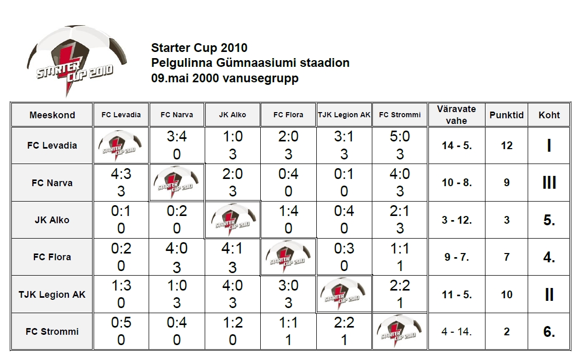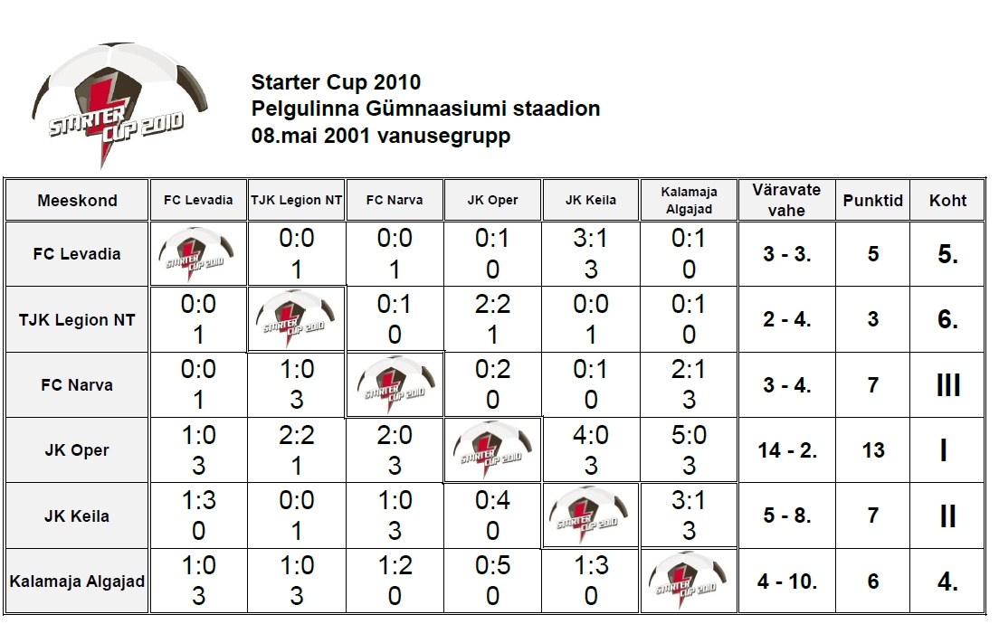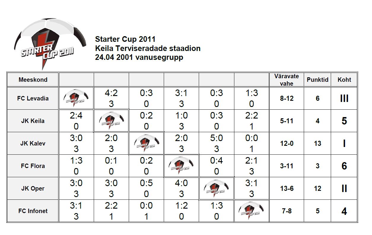 Starter Cup 2012 tulemused 2001 vanusegrupis
